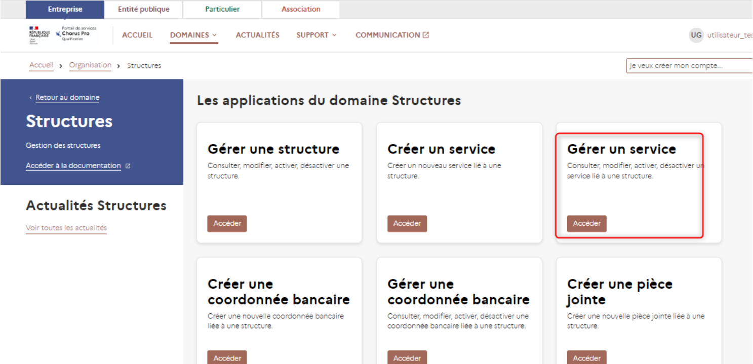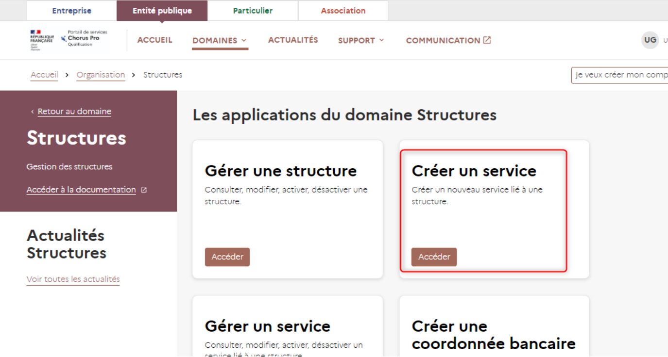 Cliquez sur le bouton "Acceder" du bloc "Créer un service"